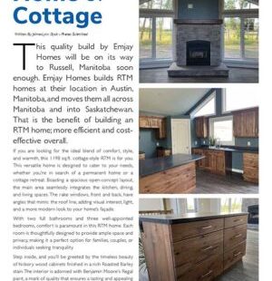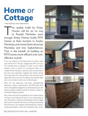 If you are looking for the ideal blend of comfort, style, and warmth, this 1198 sq.ft. cottage-style RTM is for you. This versatile home is designed to cater to your needs, whether you’re in search of a permanent home or a cottage retreat. Boasting a spacious open-concept layout, the main area seamlessly integrates the kitchen, dining, and living spaces. The rake windows, front and back, have angles that mimic the roof line, adding visual interest, light, and a more modern look to your home’s façade.